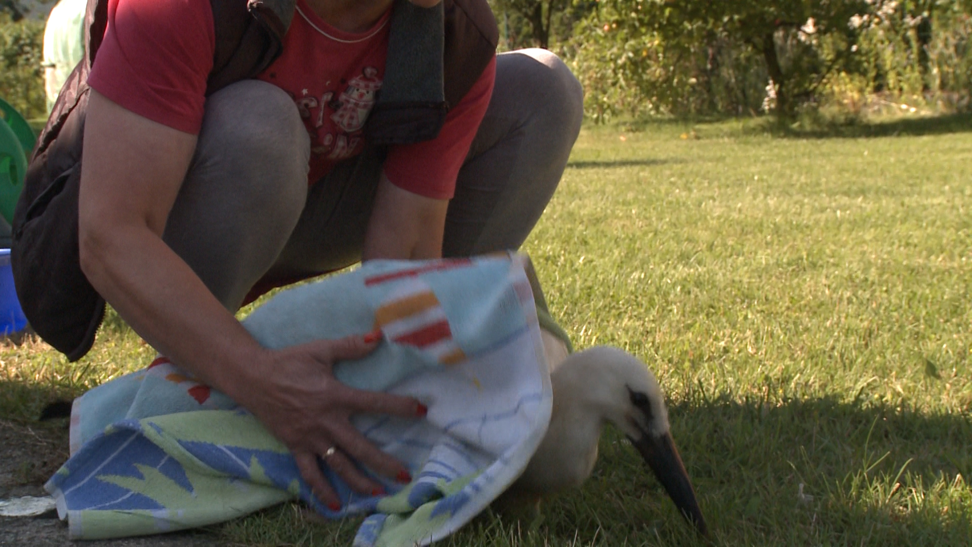 Po próbie wykonania z dachu samodzielnego lotu bocian zniknął. – Szukaliśmy go. Moja sąsiadka do późnej nocy jeździła na rowerze po łąkach i szukała go. Wtedy zgłosił się pan, ale bocian jakiś taki niesprawny się zrobił – opowiada pani Teresa.