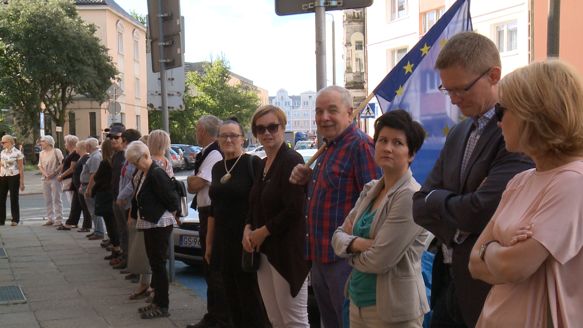 W dniu 4 lipca 2018 roku sędziowie okręgu słupskiego spotykają się przed Sądem Okręgowym w Słupsku, aby wyrazić swoje poparcie dla sędziów Sądu Najwyższego, w tym dla Pierwszej Prezes Sądu Najwyższego pani profesor Małgorzaty Gersdorf – czytała sędzia Joanna Sikora. – Zgromadzenie nasze ma charakter flash mobowy. Sędziowie ubrani na czarno otoczą wraz z innymi uczestnikami budynek Sądu Okręgowego w Słupsku symbolicznym łańcuchem ludzi na 15 minut i staną w milczeniu pragnąc zamanifestować swoje głębokie poparcie dla sędziów Sądu Najwyższego oraz wspierając ich wysiłki mające na celu zapewnienie przestrzegania obowiązującej konstytucji. Organizacje sędziowskie – zarząd Stowarzyszenia Sędziów Polskich „Iustitia”, zarząd Stowarzyszenia Sędziów „Themis”, zarząd Stowarzyszenia Sędziów Rodzinnych „Pro Familia”, zarząd Stowarzyszenia Sędziów Rodzinnych w Polsce – oraz Stowarzyszenie Prokuratorów „Lex superior omnia” wystosowały wspólny apel do środowisk prawniczych z prośbą o obecność w dniach 3 i 4 lipca 2018 roku pod Sądem Najwyższym. Ogromna większość sędziów okręgu słupskiego chciałaby być obecna tego dnia na placu Krasińskich przed Sądem Najwyższym, Część sędziów naszego okręgu miała taka możliwość. Ci jednak, którzy na dzień 3 lipca i 4 lipca mieli wyznaczone sesje orzecznicze nie mieli takiej możliwości. Taką formą wyrażenia swojego poparcia jest udział w akcji flash mobowej w dniu 4 lipca 2018 roku o godzinie ósmej. W tym samym czasie, gdy do budynku Sądu Najwyższego w Warszawie wchodzić będzie Pierwsza Prezes Sądu Najwyższego pani profesor Małgorzata Gersdorf. Dla nas, sędziów, dotychczasowy skład – niezależnie od indywidualnych ocen – był przecież zawsze ważnym elementem budowania zaufania do obowiązującego w Polsce prawa i ośrodkiem w istotny sposób wpływającym na kształtowanie standardów prawnych. Nadal dla nas Sąd Najwyższy jest ostatnią ważna instytucją, która stoi na straży trójpodziału władzy.