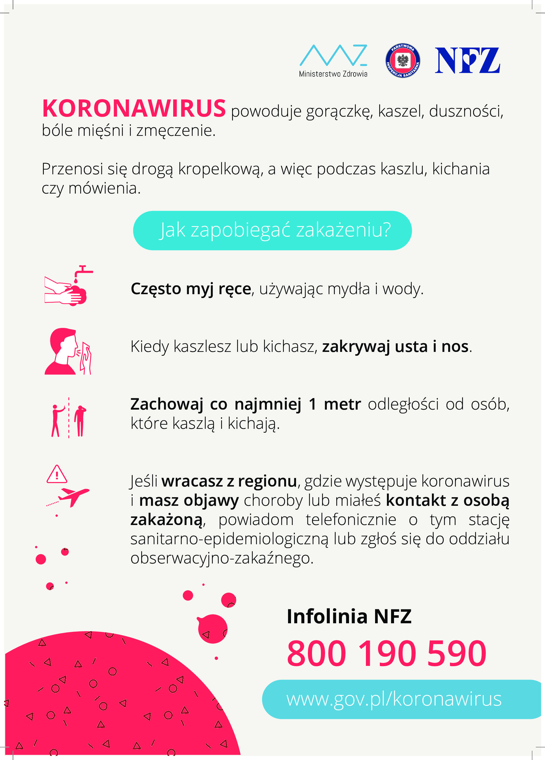 Ministerstwo Zdrowia w ramach kampanii edukacyjnej poświęconej koronawirusowi informuje o podstawowych zasadach profilaktyki zakażenia.
