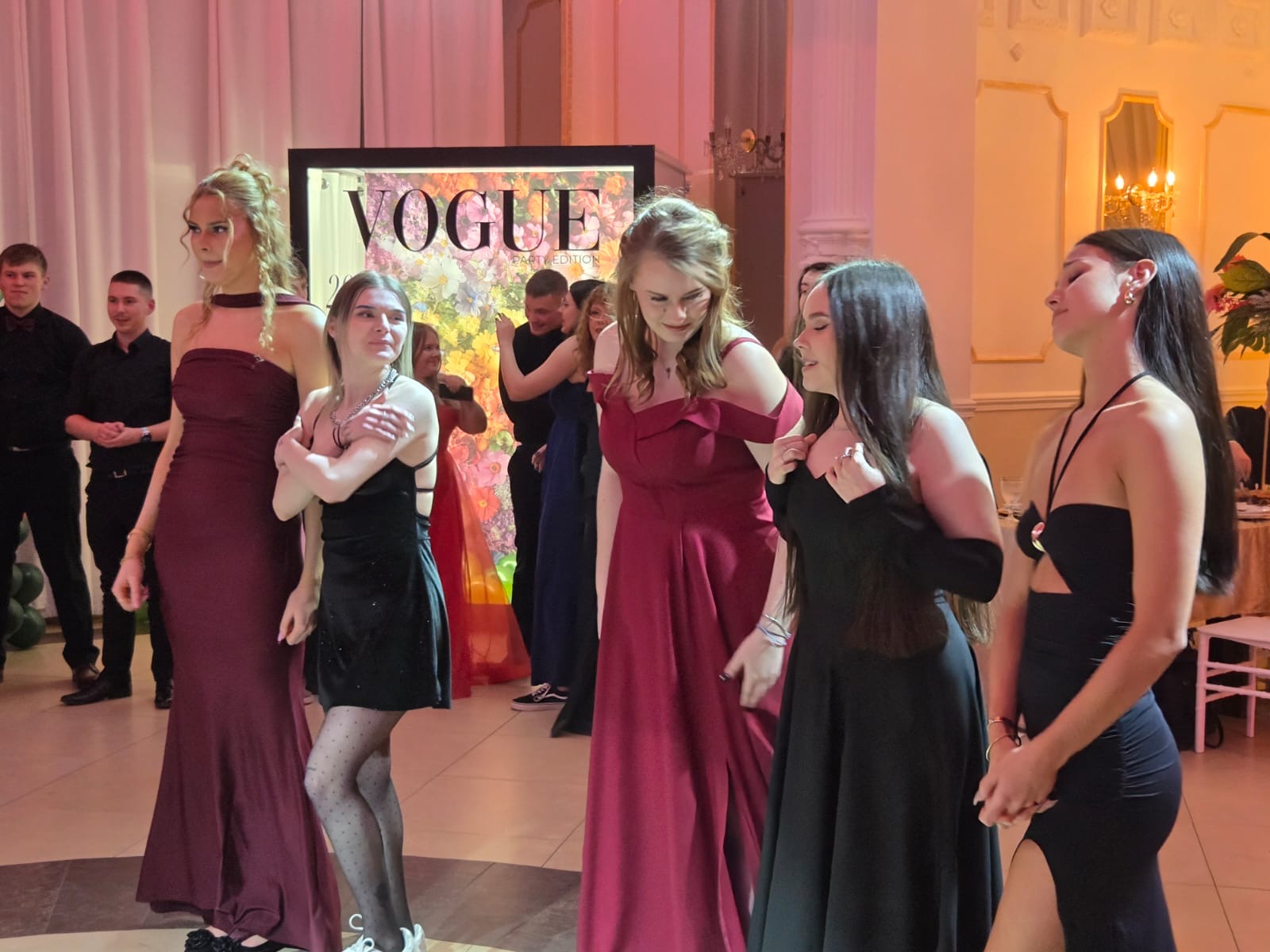 Na parkiecie młodzież zaprezentowała się w pięknych kreacjach, panowie – w doskonale skrojonych garniturach, panie – w balowych stylizacjach, dyskretnych makijażach, z tajemnymi dodatkami w strojach, które mają zapewnić powodzenie na maturze. Przede wszystkim jednak uczestników łączył radosny nastrój i taneczny zapał.